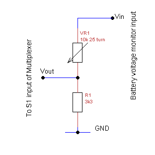 The AtoD converter can only accept voltage inputs of up to +4v. As the max voltage of a battery could be >13.5V the voltage needs to be scaled down. A simple potential divider can be used to achieve this.