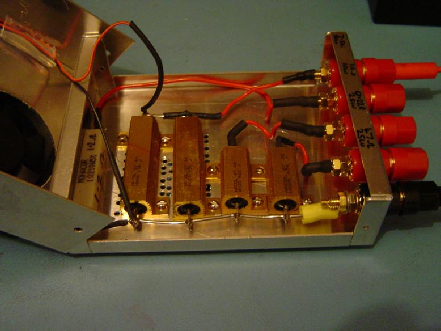 The test loads are housed within an aluminium casing. Each load is brought outside the box using banana terminals. The test box contains the following loads: