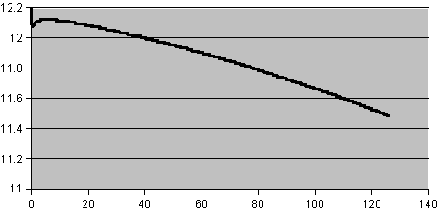 Measured discharge characteristic of a 12v, 7Ah Lead Acid battery.