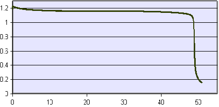 Measured discharge characteristic of a 1.2v, 800mAh AA NiCd battery.