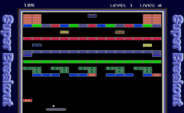 Super breakout is a version of the classic Breakout / Arkanoid type game.