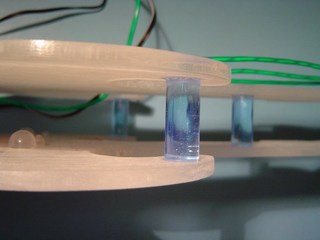 The front panel has now been attached to the back panel using a number of acrylic rods, as shown in this picture. You can see one of the LED's in this picture. When the lamp is turned on the LED will illuminate the front panel.