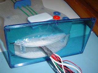 This picture shows the LED's mounted in the Perspex. The large LED's are 10mm, and the smaller ones are 5mm. I chose colours of Blue, Red and Yellow.